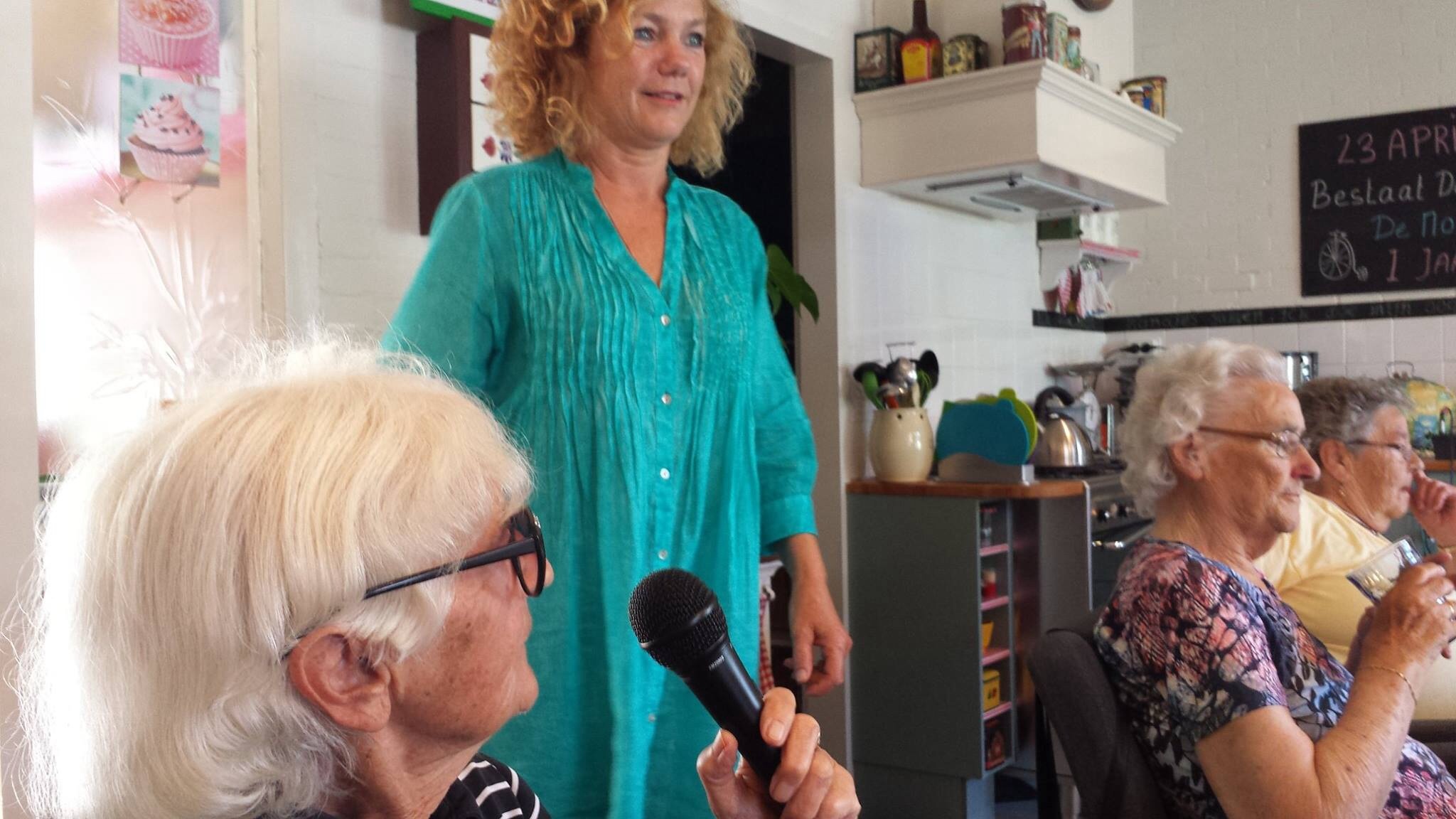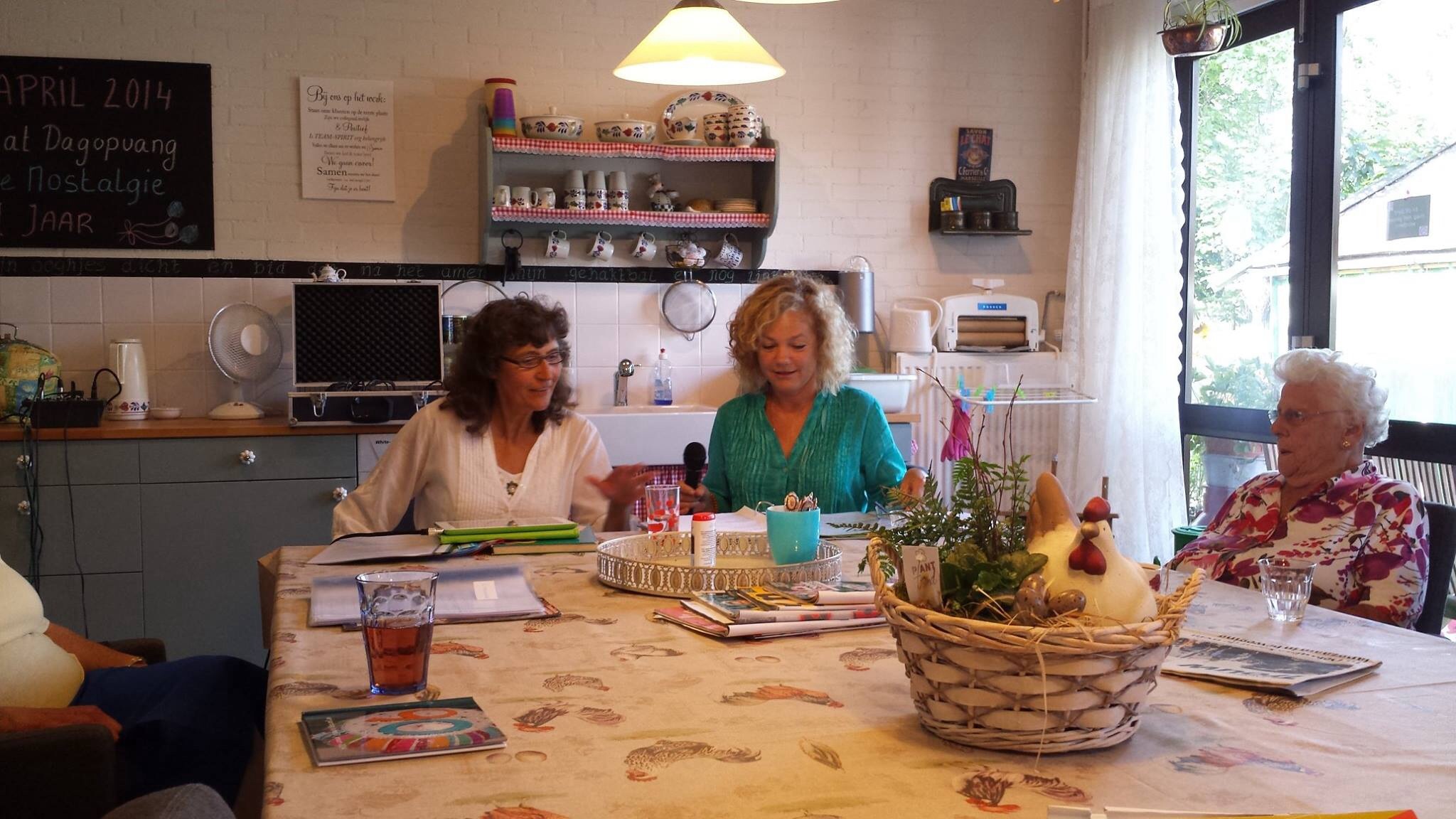 Harrie Geelen geeft zijn medewerking door schilderijen te schilderen van de vogeltjesboom waar hij laatst een tentoonstelling van had.
